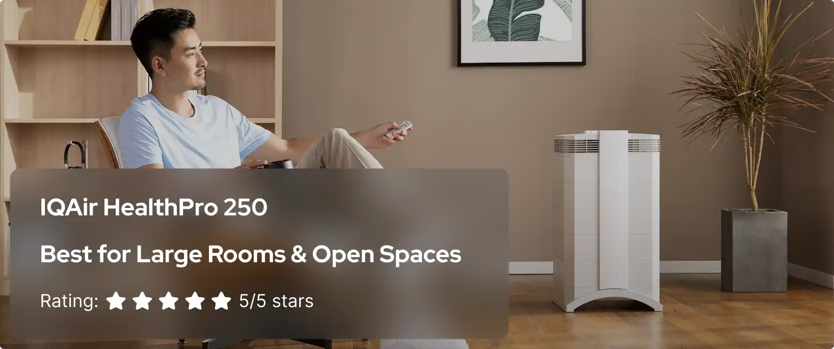 IQAir Advantage: Swiss-engineered “fan-in-center” design with sound-dampening filters creates near-silent operation even on high settings.
