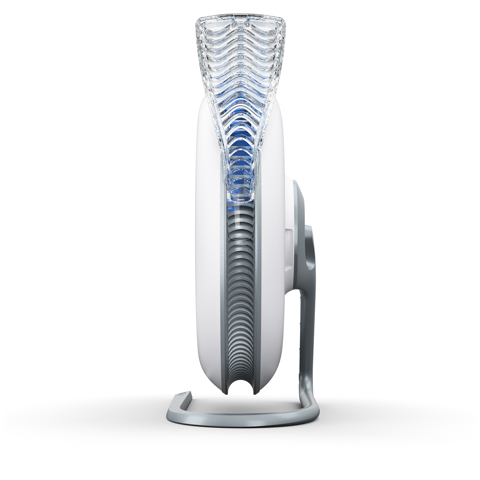 This design is especially effective for desk environments, where air circulation is limited.