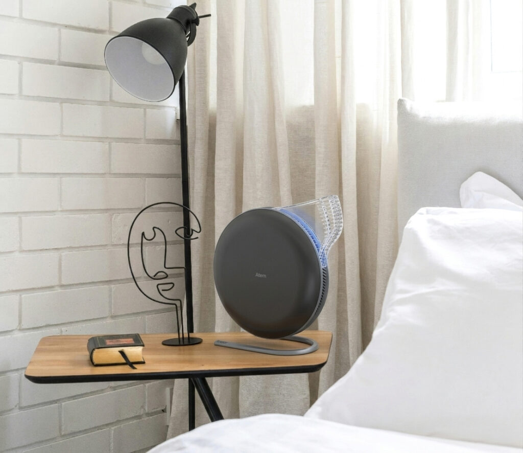 The Atem Desk is designed for compact living environments, making it suitable for HDB flats, condos, and home offices. Its sleek, space-saving design fits easily on desks or bedside tables while delivering powerful air purification where you need it most.
