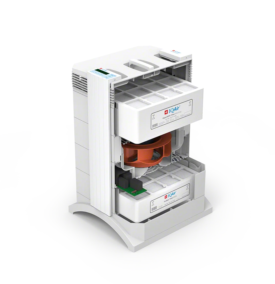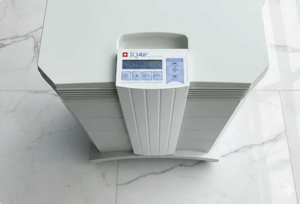 The HealthPro 100 features IQAir’s proprietary HyperHEPA filtration technology, independently tested and certified to remove 99.5% of ultrafine particles as small as 0.003 microns. This far exceeds standard HEPA filters, which are only tested for particles 0.3 microns and larger. It effectively targets microscopic pollutants, haze, pet dander, and bacteria and viruses, ensuring a safer, allergen-free space for your family.