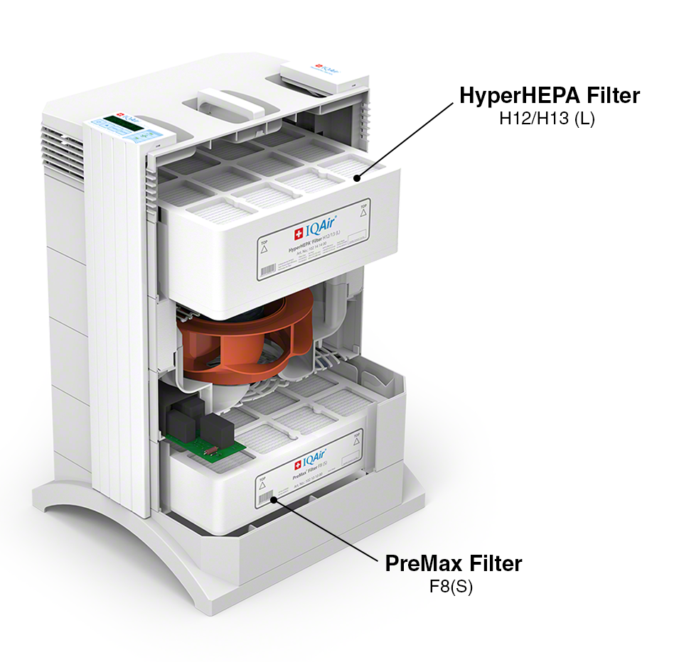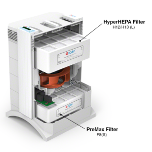 - Two-stage filtration (pre-filter + HyperHEPA)
